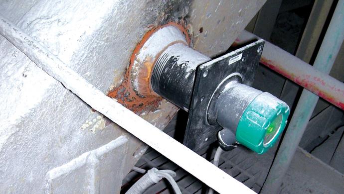 Pomiar poziomu przez ceramiczne obmurze pieca wapiennego